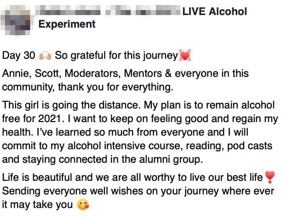 Through the daily reading, video training, and expert interviews in The LIVE Alcohol Experiment™, you don’t just change your drinking habits. You will shift how you feel about drinking and your entire relationship with alcohol.